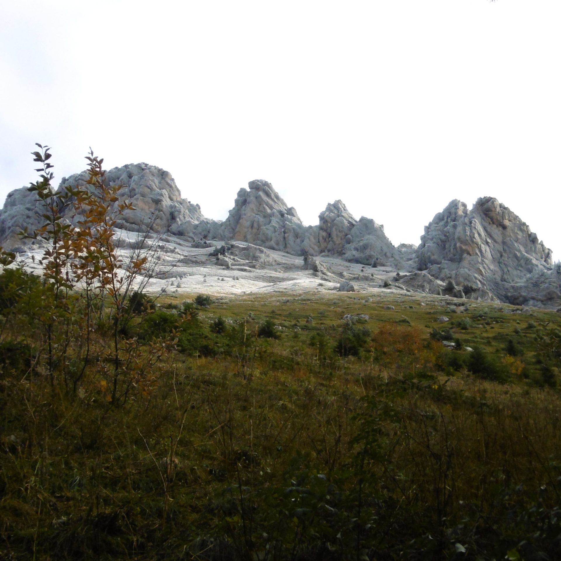 Au son de cette bonne vieille ritournelle qu’est « ah, la gadoue, la gadoue, la gadoue !!! », et avec une variante plus ou moins volontaire hors du sentier jaune, nous atteignîmes le col de la Saulce (1480 m), à partir duquel nous allions sortir enfin de la forêt. Arrivés à la cabane de Bellefont, située idéalement à l’abri des avalanches juste sous une avancée rocheuse, nous avons remonté la grande pente herbeuse menant au col, sur le GR 9 bien boueux. Une fine couche de neige blanchissait les abords du sentier.