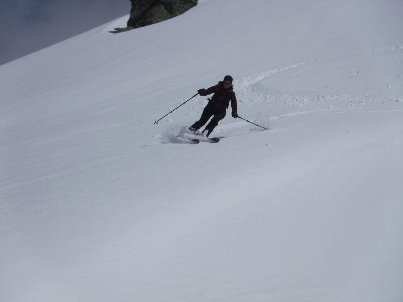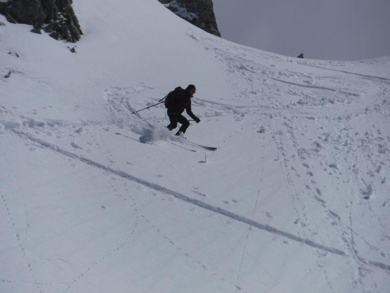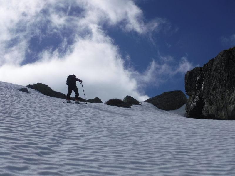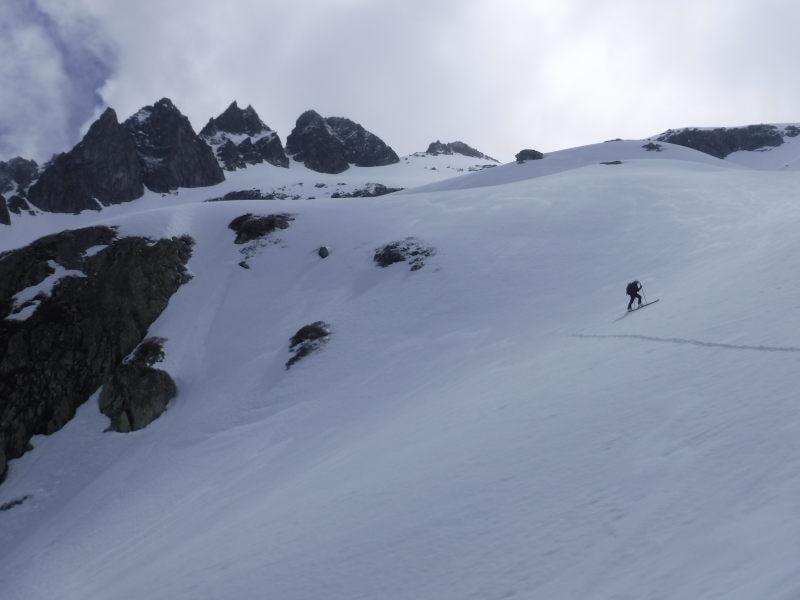 La neige est assez bonne jusqu’au niveau du refuge des Férices (1900 m) ensuite, c’est tout mou et il faut zigzaguer entre l’herbe, les pierres et les arcosses avant de remettre les skis sur le sac.