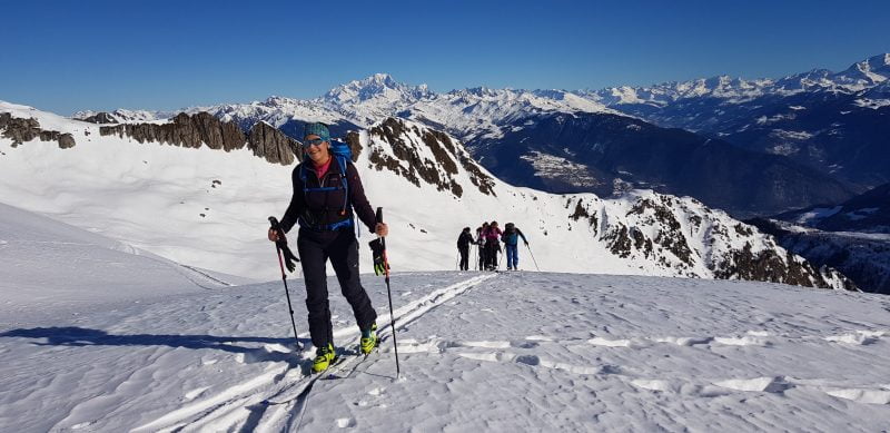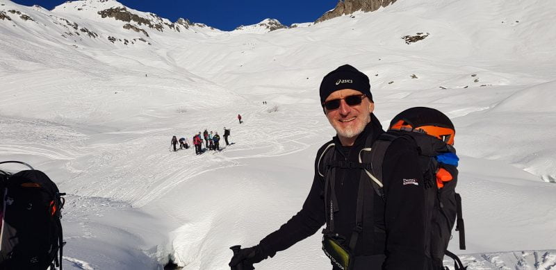 Ce mardi 18 janvier nous sommes 7 à nous retrouver pour cette très belle journée en Lauzière, pour suivre la trace de Jean qui nous conduira Alain, Bernadette, Daniel, Fabienne, Jean-Michel et Jean-Pierre depuis le parking de Celliers-Dessus (1400 m) jusqu’au Col de la Valette (2399m) puis jusqu’au Col François (2495m). Nous monterons et redescendrons par la Combe des Plans, après avoir fait une très belle traversée entre les deux cols. Neige bien agréable à skier sur la moitié haute, « trafollée » et parfois dure et gelée sur la partie inférieure. La montée aura été l’occasion de travailler les conversions, la descente de vivre quelques démonstrations de virages sautés par Daniel et Jean. La bonne humeur ambiante alliée au soleil et aux températures clémentes a été la cerise sur le gâteau, encore une tranche de notre belle région qu’on aura savouré avec délectation !