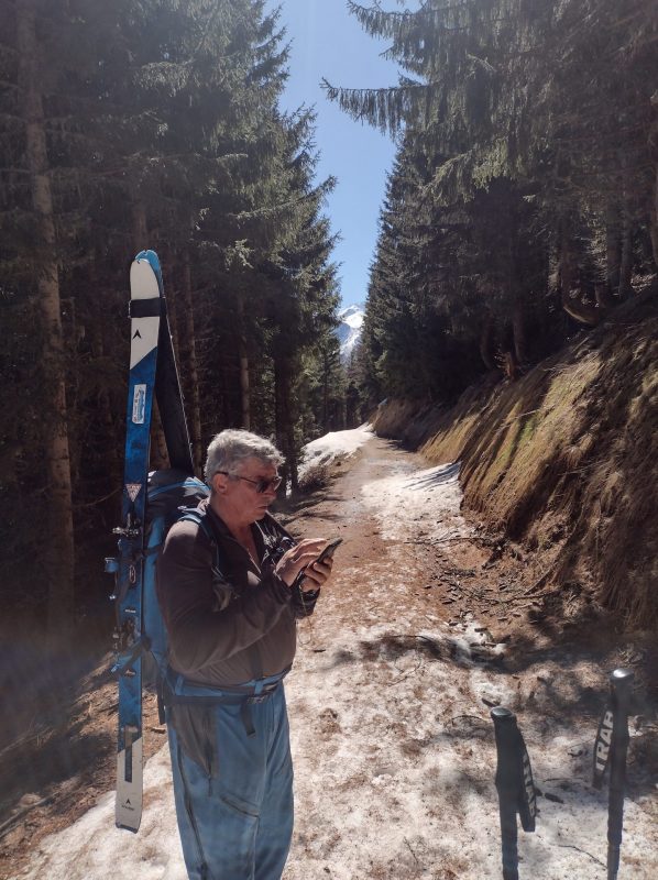 En montant sur la piste forestière depuis St-Colomban-des-Villards, Daniel m’a indiqué deux endroits différents où il avait posé la voiture précédemment… Autant vous dire qu’on a fait une partie du dénivelé escompté en voiture.
