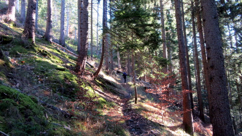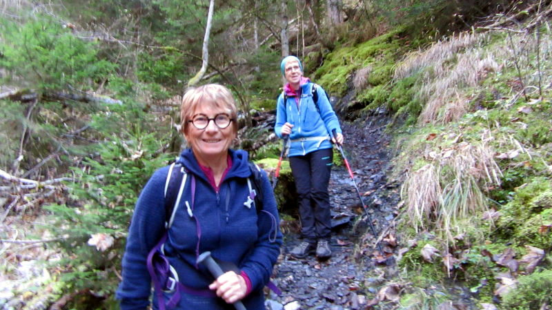 Après la tourbière, source du Gelon, nous plongeons dans le vallon boisé et à l’ombre, par un sentier raide. Casse-croute, au soleil, dans le hameau ruiné du Sapey puis Montendry.