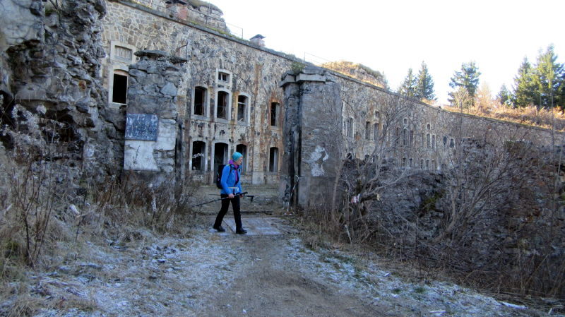 On rejoint le fort de Montgilbert puis la batterie de Rochebrune ou la vue sur le massif de la Lauzière est magnifique.