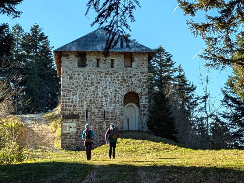 Départ à côté de la mairie du charmant village de Montendry (51 habitants) par un sentier, creux et très raide, en sous-bois. La vue se dégage vers le décollage parapente et le plus gros de la montée est derrière nous.