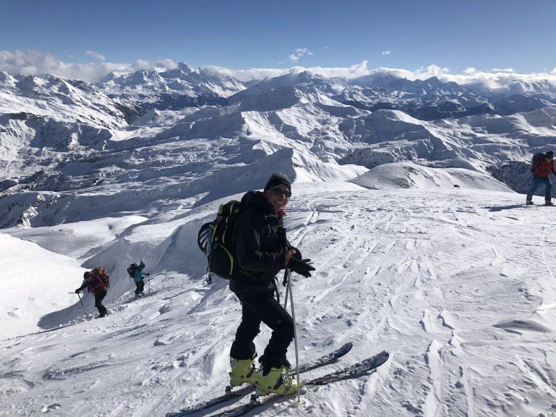 La suite de l’itinéraire bascule derrière l’arête du Grand Rognoux pour rejoindre le vallon sud . Une trace bien raide dans le goulet ( les collants pipettes ont encore frappé ) , « j’ai préféré traverser sur la croupe « , une petite traversée en neige ventée gelée « expo » et la dernière pente nous amène au sommet .