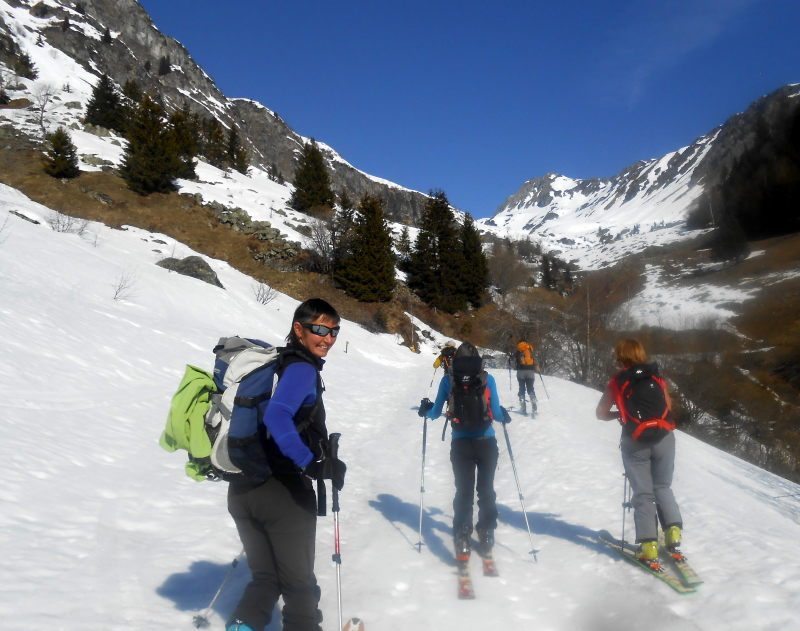 Deux groupes se sont constitués à Celliers Dessus (1361 m), les gars partis pour le Grand Pic de la Lauzière (1500 m de dénivelée, final crampons-piolet) et les filles en route pour la Combe de Bridan, vers les Portes de Montmélian.