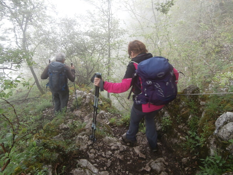 Au départ de l’ex-station de ski de La Sambuy (1150 m), en suivant la direction « chalet de la Bouchasse », on rejoint par un petit sentier forestier la faille rocheuse équipée de câbles, dite Pas de l’Ours. Par temps humide, comme aujourd’hui 1ᵉʳ juin, le passage demande de l’attention.