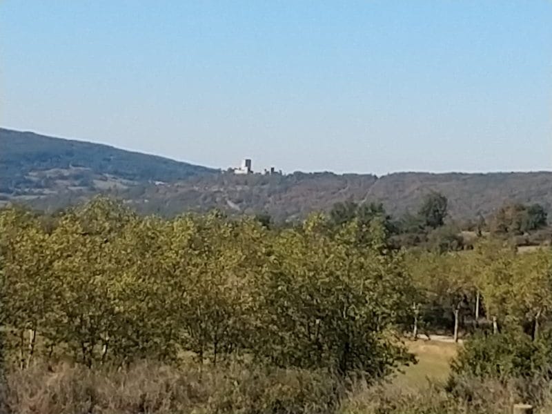 Pour ne pas repartir par la « morne plaine », nous traçons un itinéraire un peu complexe (merci Iphigénie) passant par Trassoulas avant de rejoindre le Gr 367 vers Méringou. La Crête qui suit nous permet de voir de loin le château de Monségur sur son pog avant de descendre, en forêt, sur Comus.