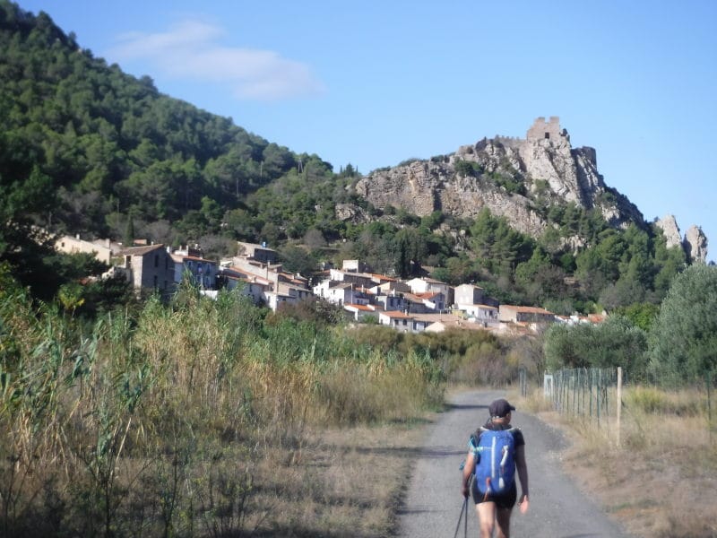 Visite du château de Quéribus puis descente vers Cucugnan, village touristique (le seul du parcours) avec notamment son moulin. Hébergement l’Écurie de Cucugnan.