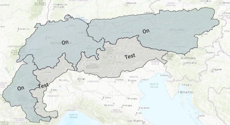 Actuellement, sont couverts : la Suisse et l’Autriche en intégralité, les Alpes françaises en partie, l’Italie est en test.