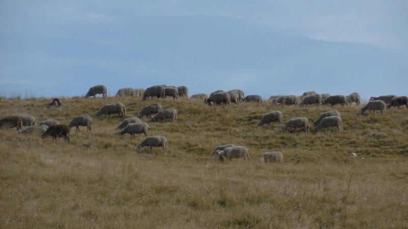 Retour par les pistes de la station, mouvementé lors de la rencontre du troupeau de brebis de Claran, et de ses cerbères qui savent donner de la voix ; mais la bergère nous convainc que ses chiens ne sont pas dangereux !