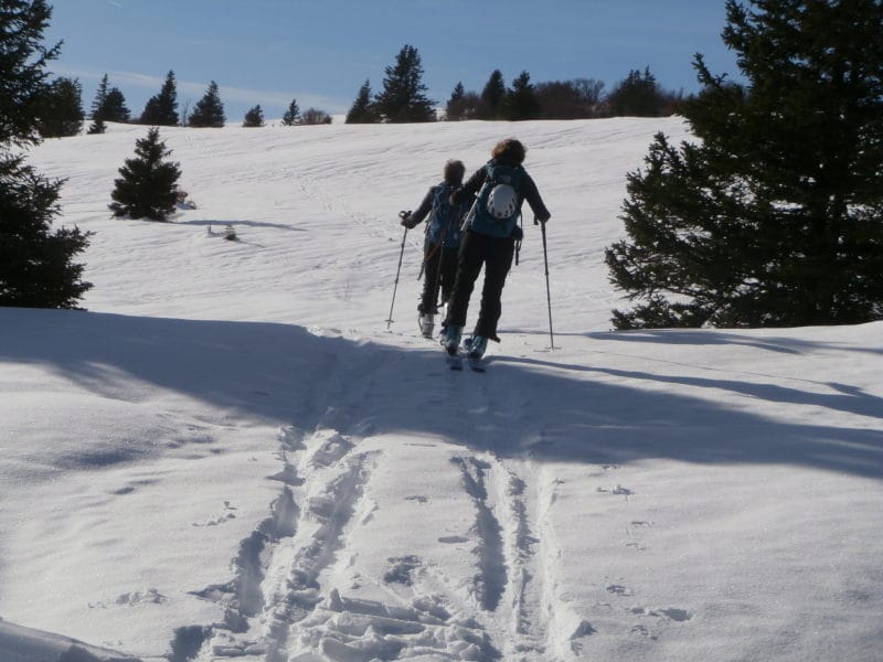 Descente par les pistes d’autant que la neige était bien croutée en dehors.