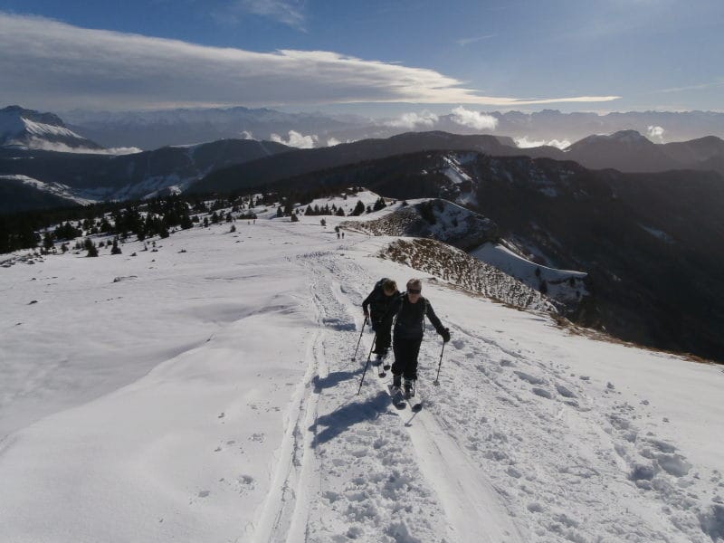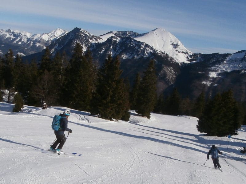 Nous avions prévu la Dent de Rossanaz mais vu les conditions nivo-météo, nous avons opté pour le Margériaz et nous n’étions pas les seuls : en ski de rando, en raquettes, en ski de piste (la station était ouverte).