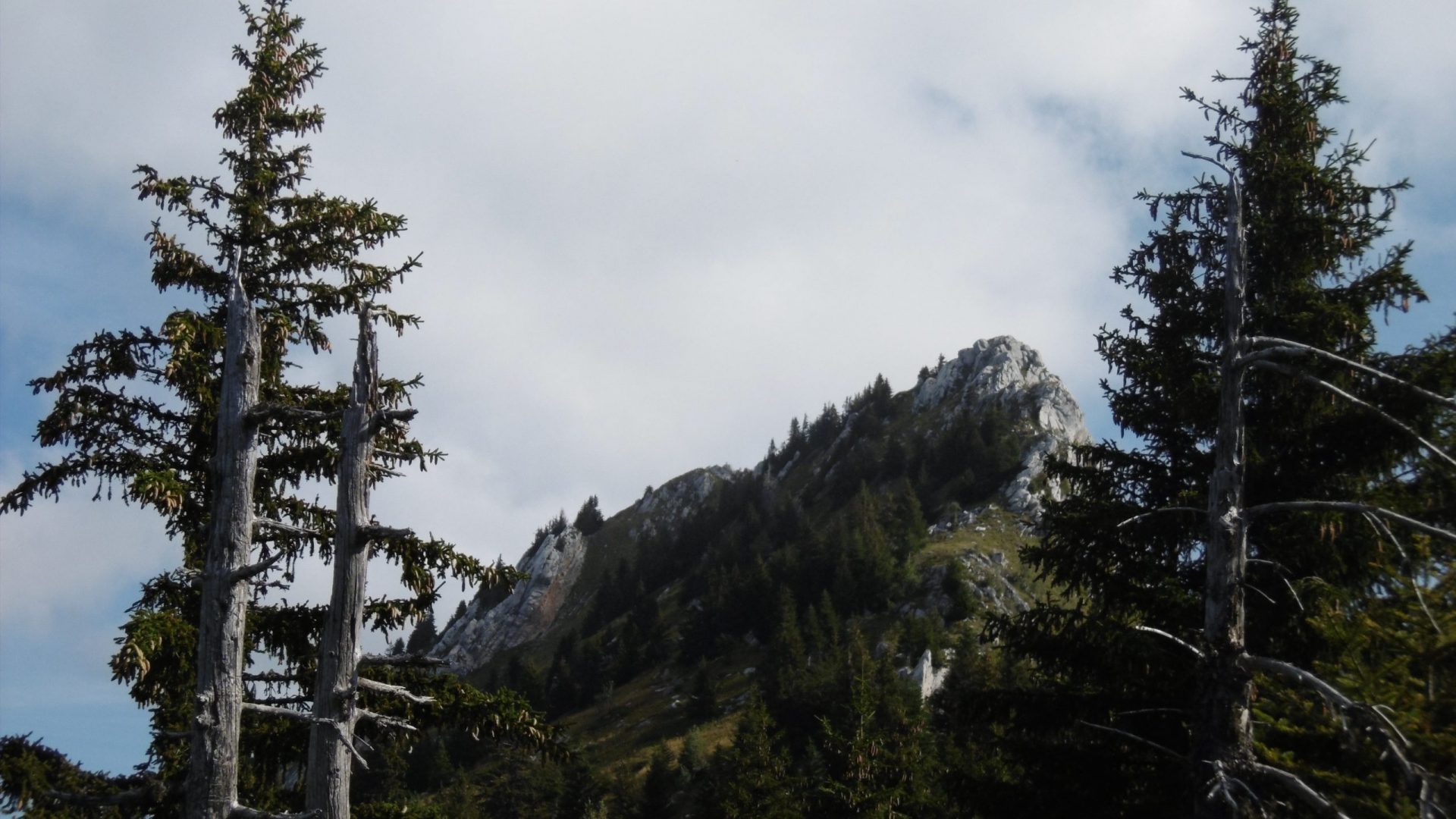 Au col de Cochette (1694 m), nous avons embrayé résolument vers le sommet du Mont Colombier (2045 m), par le bon sentier zigzagant sur la face sud. Là-haut, malgré quelques gros nuages, nous avons pleinement apprécié le casse-croûte et la vue sur la Croix et les chalets de Rossanaz.