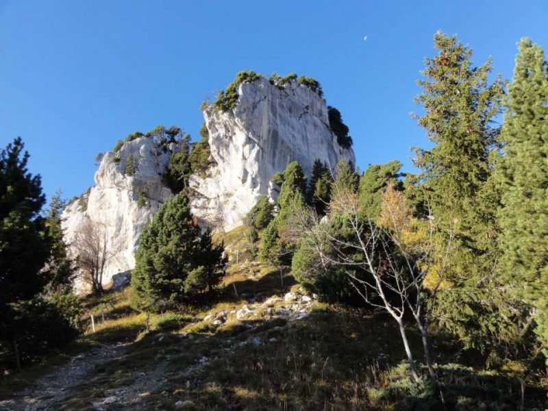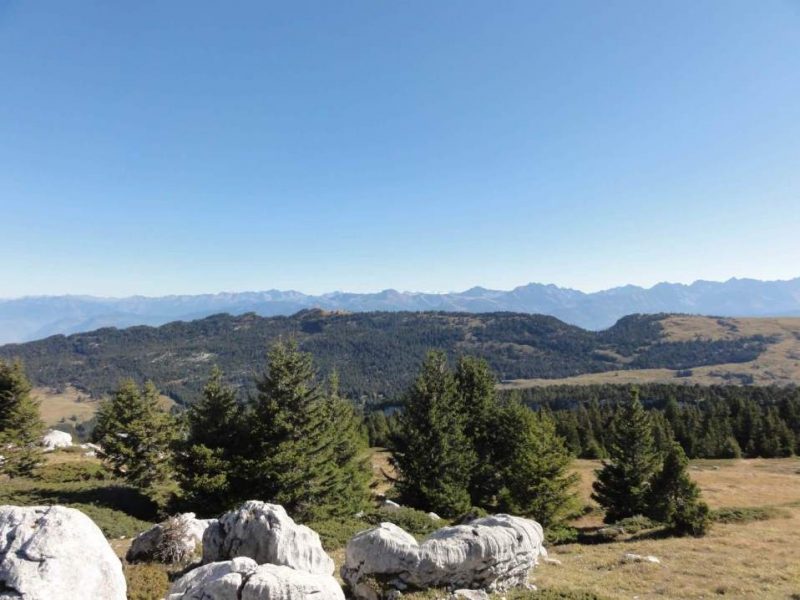 Il ne reste plus qu’à se rendre à l’évidence : il faut rentrer au parking … Alors chacun empoigne ses bâtons, se motive un peu, dit au revoir au 360° du Pinet, et danse sur les lapiaz qui jonchent le plateau. Un temps nous quittons le sentier pour regagner le point bas, respectant ainsi la tradition : « on n’passe jamais au même endroit pour redescendre ! ».