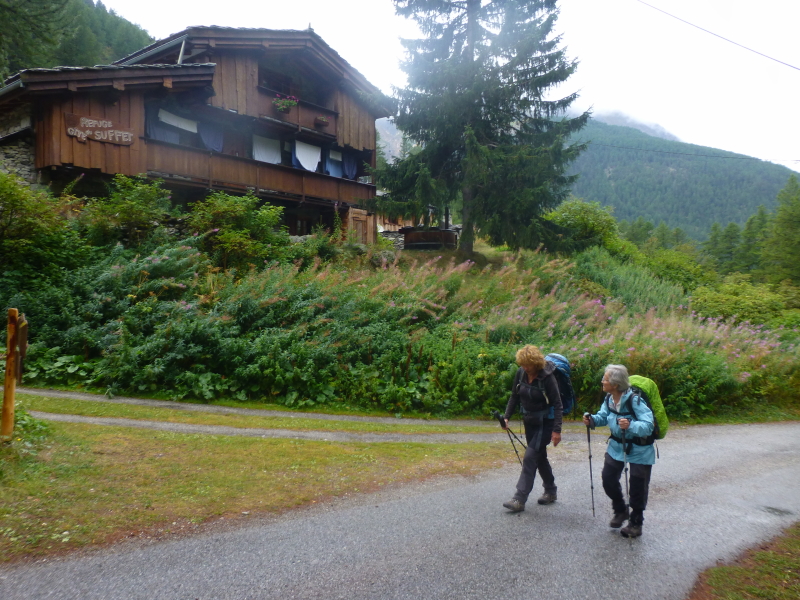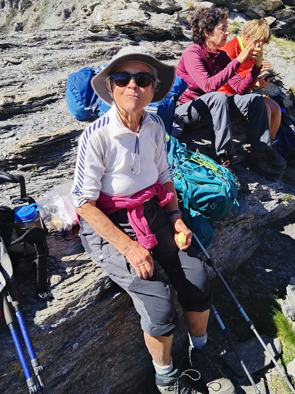 Nous arrivons en début d’après-midi au refuge-gite du Suffet (1750 m), au-dessus de Bramans, après un voyage de deux heures en voiture. Le temps est humide, nous enfilons les vestes « Goretex », vérifions si tout le nécessaire est bien dans nos sacs à dos pour sept jours d’itinérance, et démarrons vaillamment sur une route encadrée de belles forêts de mélèzes et autres conifères. Très vite, un sentier louvoyant entre les rochers et végétations fleuries sur la rive droite du torrent d’Ambin, nous monte insensiblement au refuge d’Ambin (2270 m). Le site est assez austère, l’accueil de la gardienne Florence très sympathique, et la soirée dans cette maisonnette rustique permet les premiers échanges entre nous 9 et d’agréables convives (une mère et sa fille Zoé en vadrouille).