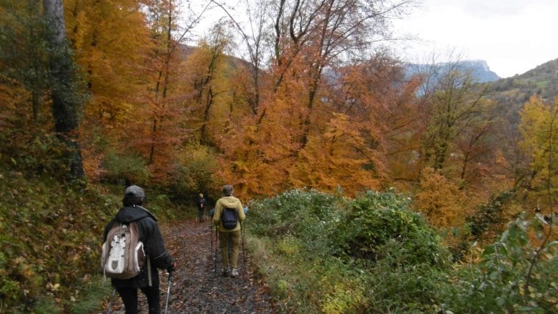 De belles forêts de hêtres, des arbres lichéneux tout au bord du Bens bouillonnant, à l’emplacement de l’ancienne douane entre Savoie et France, des mélèzes au sommet, des érables au feuillage doré !