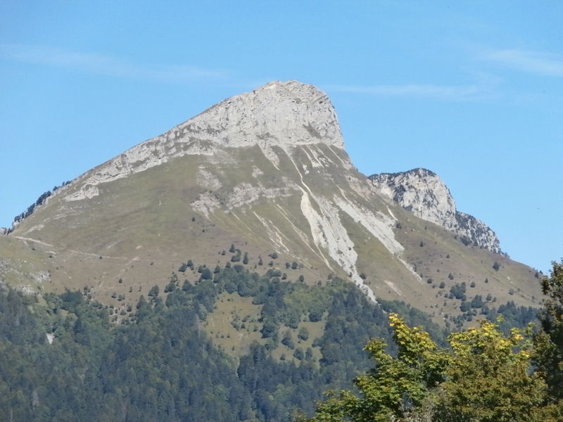Le sentier nous a amenés au point 1225, à partir duquel il remonte tranquillement l’arête sud-sud/est du mont Morbié : beaucoup de forêt et quelques points de vue sur les beaux sommets beaujus, des colchiques (« c’est la fin de l’été… »), un aperçu sur les crêtes fauves issues du col de la Sciaz, un dernier raidillon et le sommet ! Là, un groupe de sympathiques Bretons en vacances à Routhennes découvre avec plaisir le massif de Belledonne, le Colombier, l’Arclusaz, l’Arcalod, le mont de la Vierge et autres reliefs.
