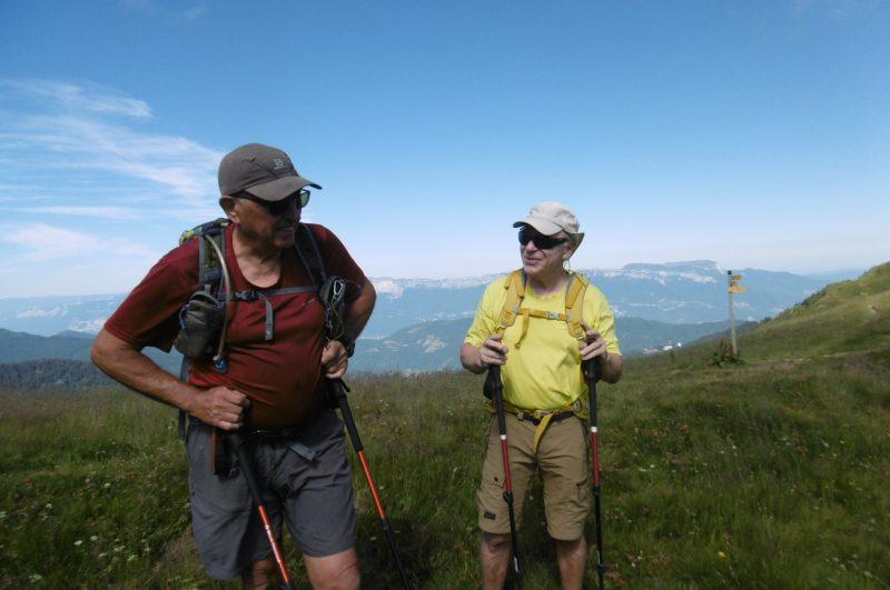 Le trio du jour (Richard, Daniel, Geneviève), parti de Super Collet d’Allevard, est passé par le col de Claran (1956 m) , en parcourant le sentier-balcon du versant Veyton. Déjà quelques myrtilles mûres !