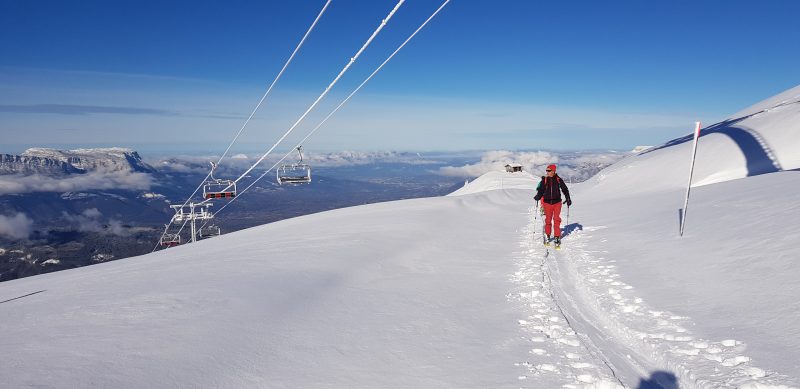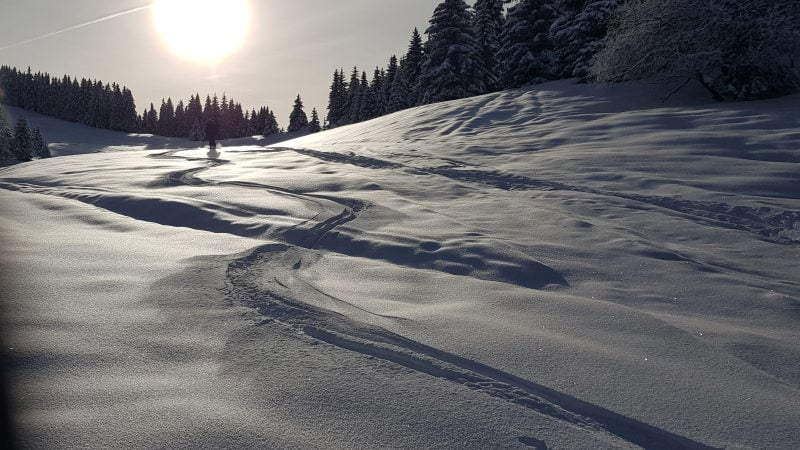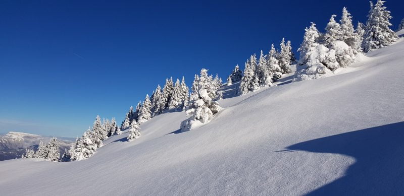Froid vif (moins 10°C à 9h30 au parking du Pré-Rond). Poudre excellente pour Daniel notre G.O., Jean-Noël, Rosario et JiPé.